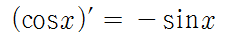 - cos(x) 미분: (cos(x))' = -sin(x)