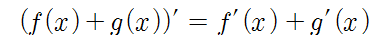 - 합의 미분: (f(x) + g(x))' = f'(x) + g'(x)