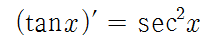 - tan(x) 미분: (tan(x))' = sec^2(x)