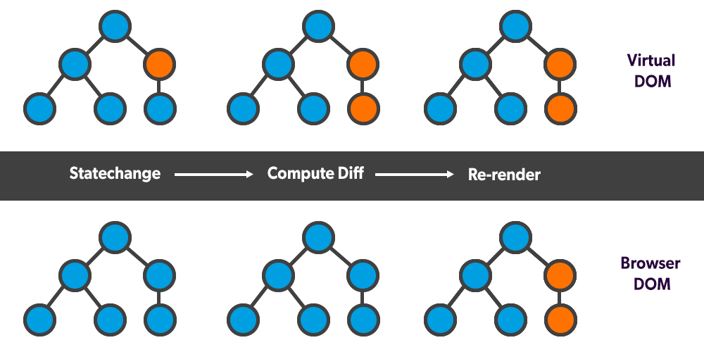 1. Virtual Dom에서 주황색 원에 State변화가 일어남
