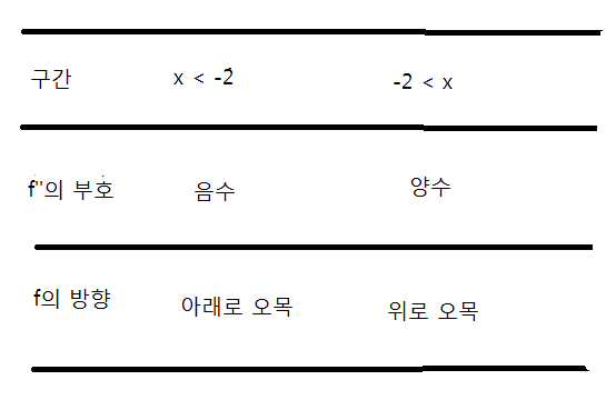- f'(x) = 0이고 f''(x) > 0일 경우(2계 도함수의 값이 양수일 경우)
