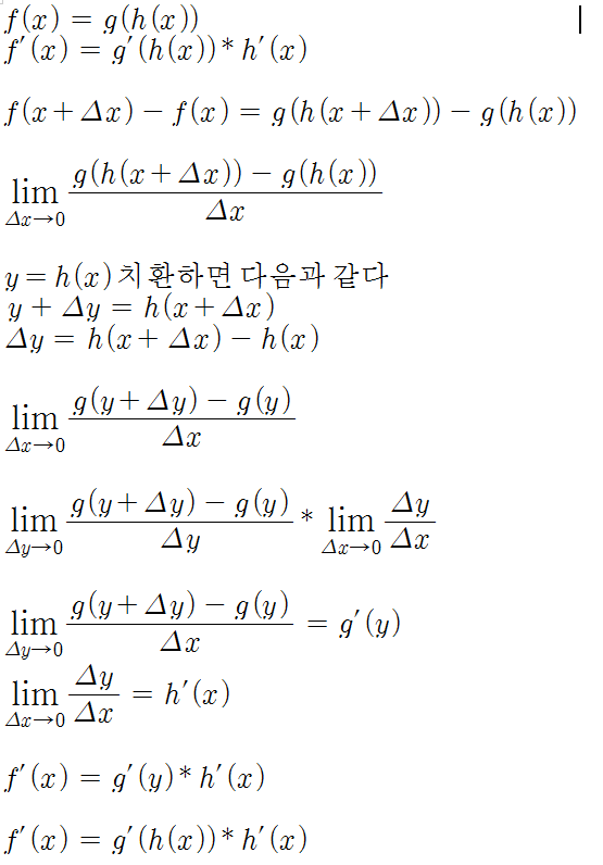이번 글에서는 연쇄 미분 공식의 증명을 살펴보겠습니다.