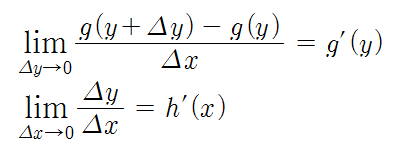 lim (Δy -> 0) [(g(y + Δy) - g(y)) / Δy] * lim (Δx -> 0) [Δy / Δx]