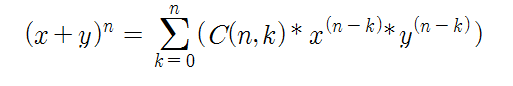- (x+y)^n = Σ(C(n, k) * x^(n-k) * y^k) (k=0부터 n까지)