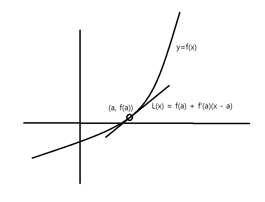 - 여기서 L(x)는 선형 근사 함수이고, f'(a)는 함수 f(x)의 x=a에서의 미분계수(기울기)입니다.