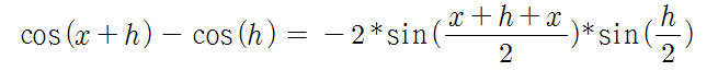 - cos(x + h) - cos(x) = -2 * sin((x + h + x) / 2) * sin(h / 2)