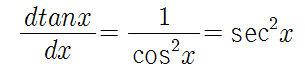 - d(tan(x))/dx = 1 / cos^2(x) = sec^2(x)