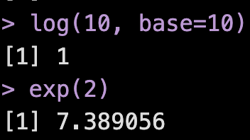 다음은 로그 계산을 해주는 log()함수, 자연상수로 계산해주는 exp()함수입니다.