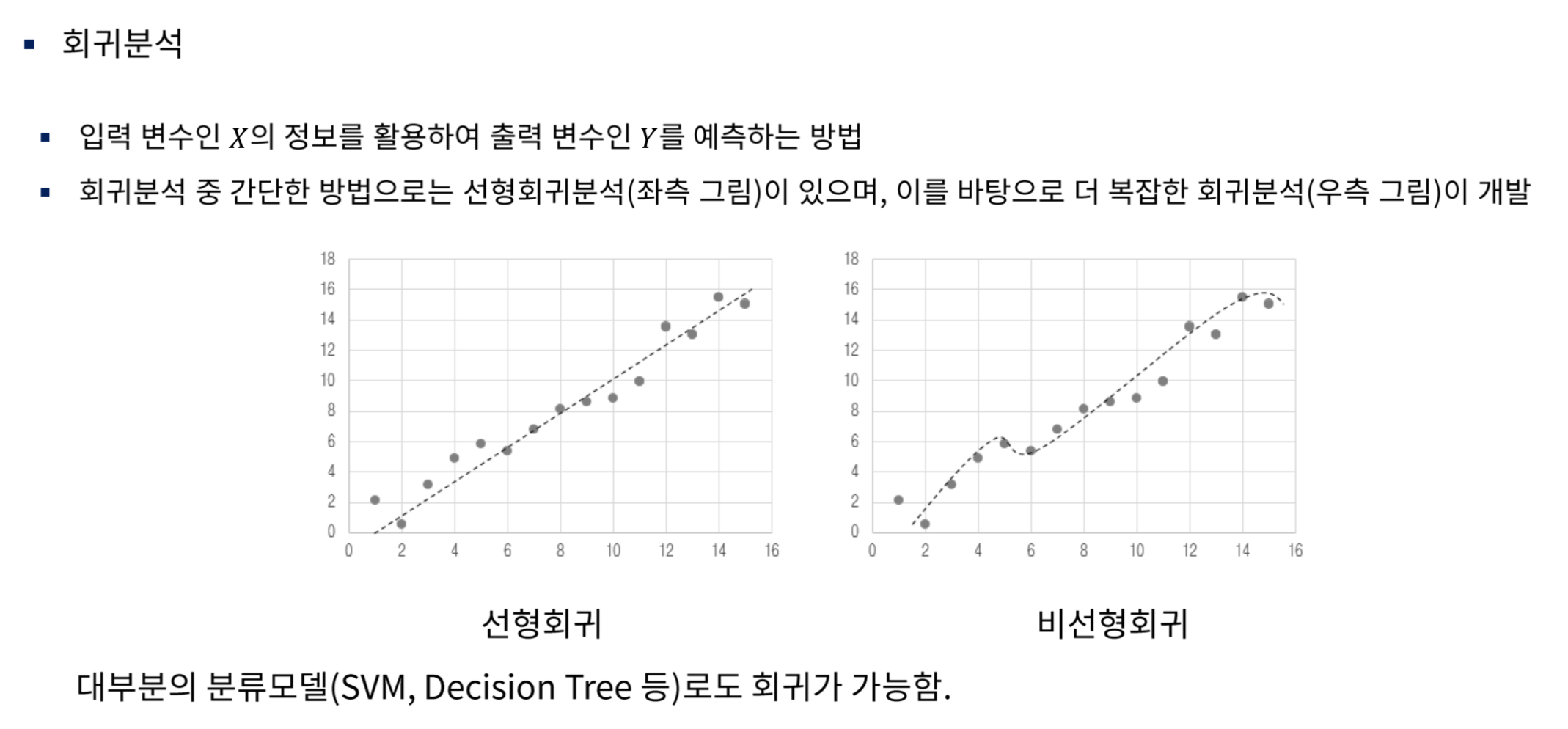 - 회귀분석 (데이터를 예측하기 위해 사용)